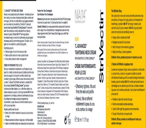 StriVectin StriVectin-TL Tightening Neck Cream has an immediate firming effect as it works in the long-term to regain neck and jawline contours. Exclusive NIA-114, a molecule, boosts your skin's ability to hold natural collagen and moisture as your skin becomes more resilient and youthful. As a result your skin becomes smooth with a lifted look and youthful appearance.PRODUCT DIRECTIONS / ADDITIONAl INFO