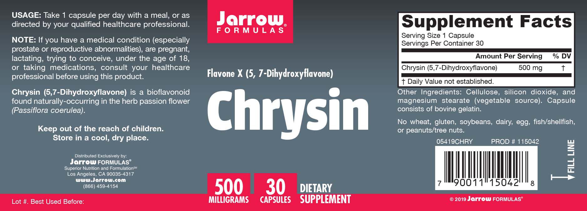 Jarrow Formulas® Chrysin 500 MILLIGRAMS