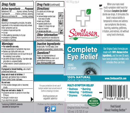 When your eyes need multi-symptom relief reach for Similasan Complete Eye Relief sterile eye drops. It stimulates the body's natural ability to temporarily relieve and address eye symptoms like dryness, burning, watering, grittiness, irritation, and redness. All without using harsh chemicals.PRODUCT DIRECTIONS / ADDITIONAl INFO