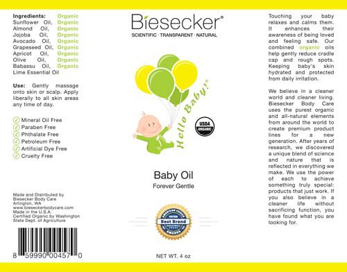 Touching your baby relaxes and calms them. It enhances their awareness of being loved and feeling safe. Our combined organic oils help gently reduce cradle cap and rough spots. Keeping baby's skin hydrated and protected from daily irritation.We believe in a cleaner world and cleaner living. Blesecker Body Care uses the purest organic and all-natural elements from around the world to create premium product lines for a new generation. After years of research, we discovered a unique blend of science and nature that is reflected in everything we make. We use the power of each to achieve something truly special: products that just work. If you also believe in a cleaner life without sacrificing function, you have found what you are looking for.