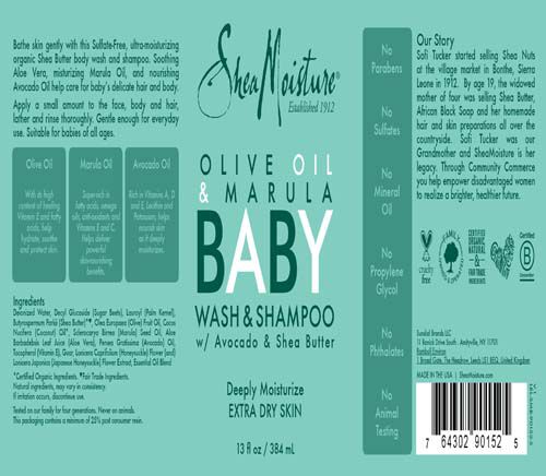 Bathe skin gently with this Sulfate-Free, ultra-moisturizing organic Shea Butter body wash and shampoo. Soothing Aloe Vera, moisturizing Marula Oil, and nourishing Avocado Oil help care for babyʼs delicate hair and body.Our Story: Sofi Tucker started selling Shea Nuts at the village market in Bonthe, Sierra Leone in 1912. By age 19, the widowed mother of four was selling Shea Butter, African Black Soap and her homemade hair and skin preparations all over the countryside. Sofi Tucker was our Grandmother and Shea Moisture is her legacy. Through Community Commerce you help empower disadvantaged women to realize a brighter, healthier future.