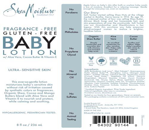 This ever-so-gentle lotion moisturizes baby's sensitive skin without risk of irritation caused by synthetic colors or fragrances. Organic Shea, Cocoa and Mango Butters blend with Aloe Vera and Vitamin E to nourish and protect, while calming and soothing.