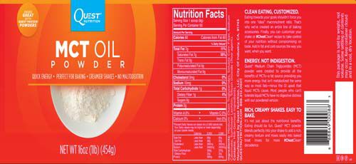 Quest® Medium Chain Triglycerides (MCT) powder were created to provide all the benefits of MCTs - a fat source providing you more energy that isn't metabolized the same way as most fats - minus the GI upset that liquid MCTs cause. Most people who can't tolerate liquid MCTs have no digestive distress with our powdered version.
