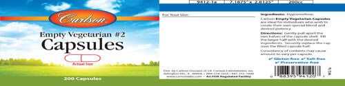 Carlson Empty Vegetarian Capsules are ideal for individuals who wish to create their own special blend and desired potency.PRODUCT DIRECTIONS / ADDITIONAl INFO