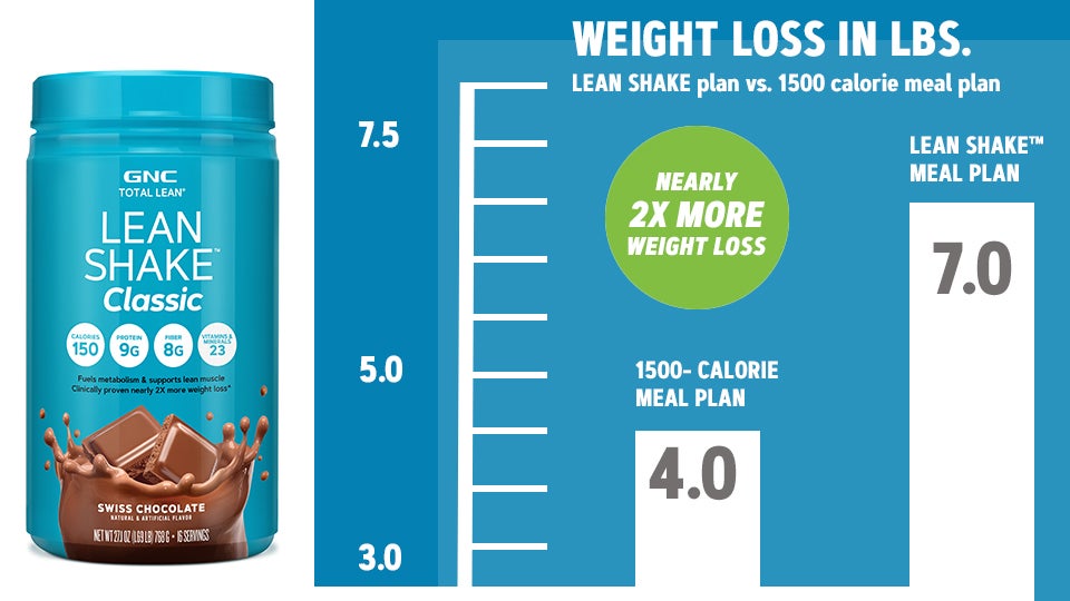 It’s the Lean Shake™ that started it all: Get the right amount of protein, fiber, and calories for your unique weight management needs—plus support for immune health from a blend of 23 vitamins and minerals*. Lean Shake Classic meal replacement from GNC Total Lean® fuels metabolism, supports lean muscle, and is clinically proven to support nearly 2X more weight loss^.