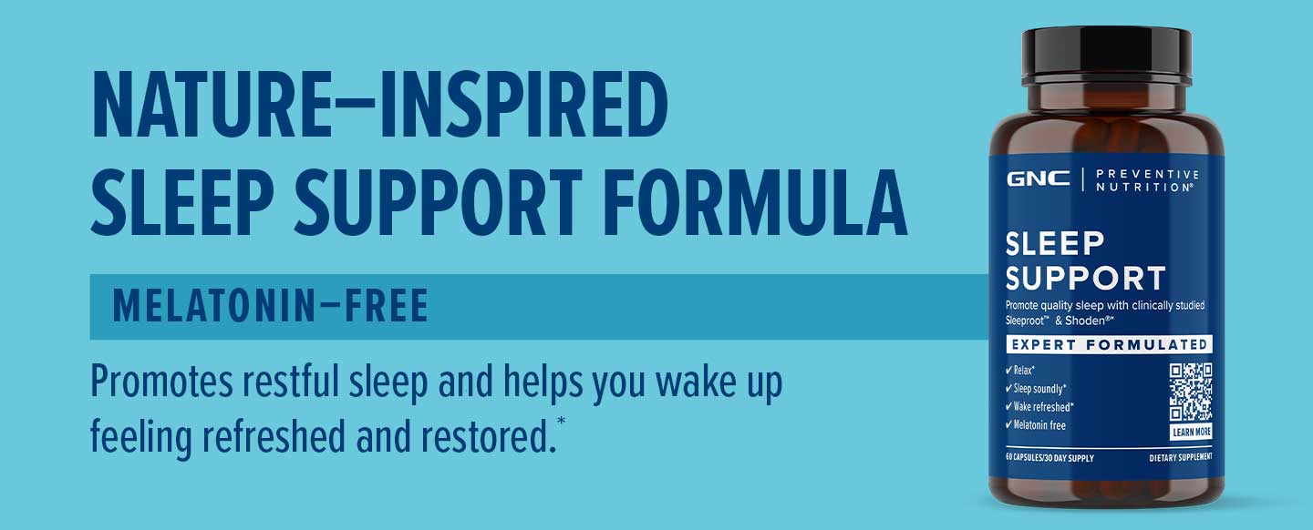 Quality sleep is the first step to achieving any health and wellness goal—and if you’re trying to exercise, it’s absolutely crucial. GNC Preventive Nutrition Sleep Support is one of our best sleep supplements that promotes quality sleep without melatonin and features Shoden®Ashwagandha Extract to help you wake up feeling restored*.